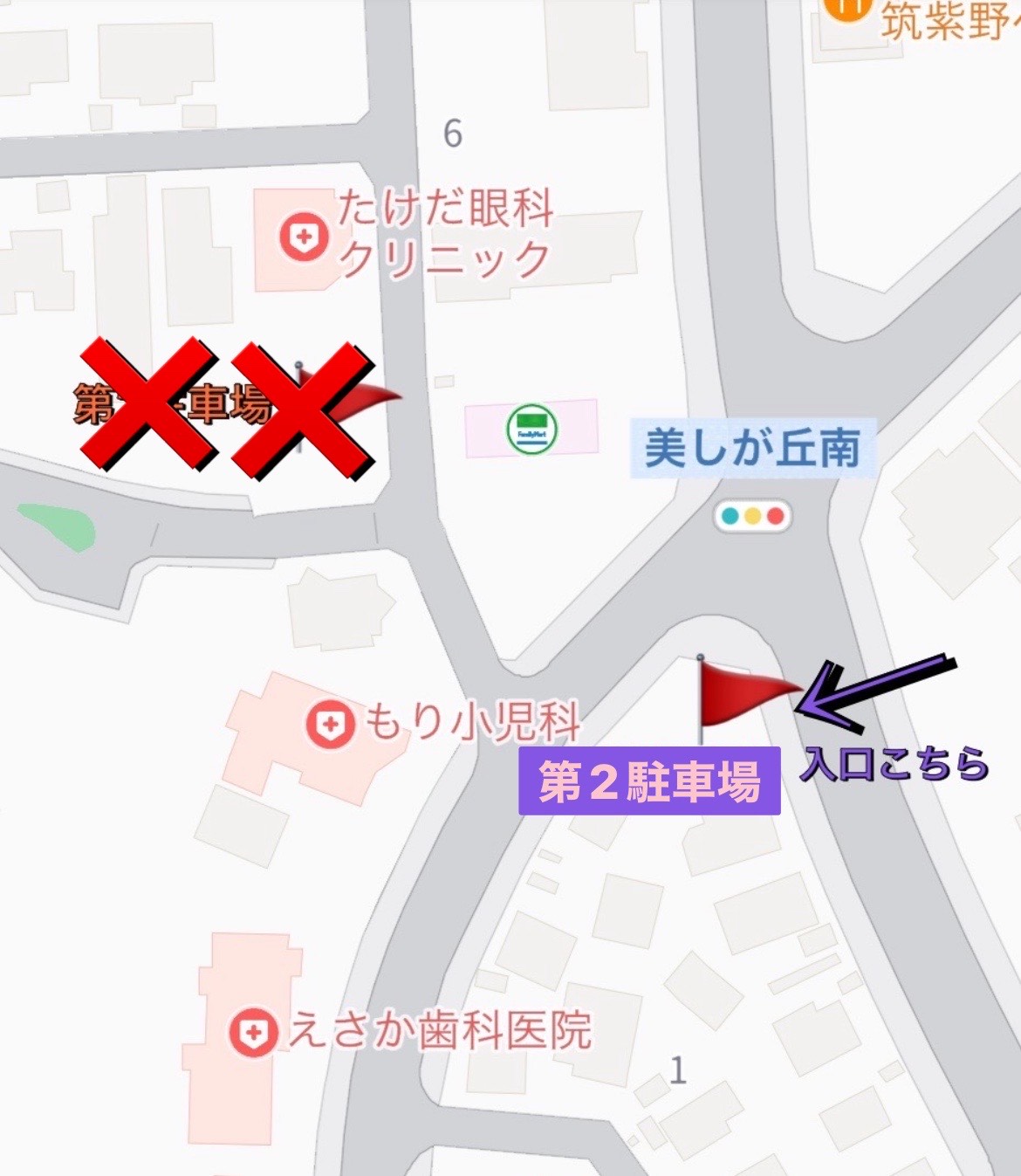 新しい第2駐車場に停めた際にはファミリーマートに向かって横断歩道を渡って、気を付けてお越しください。